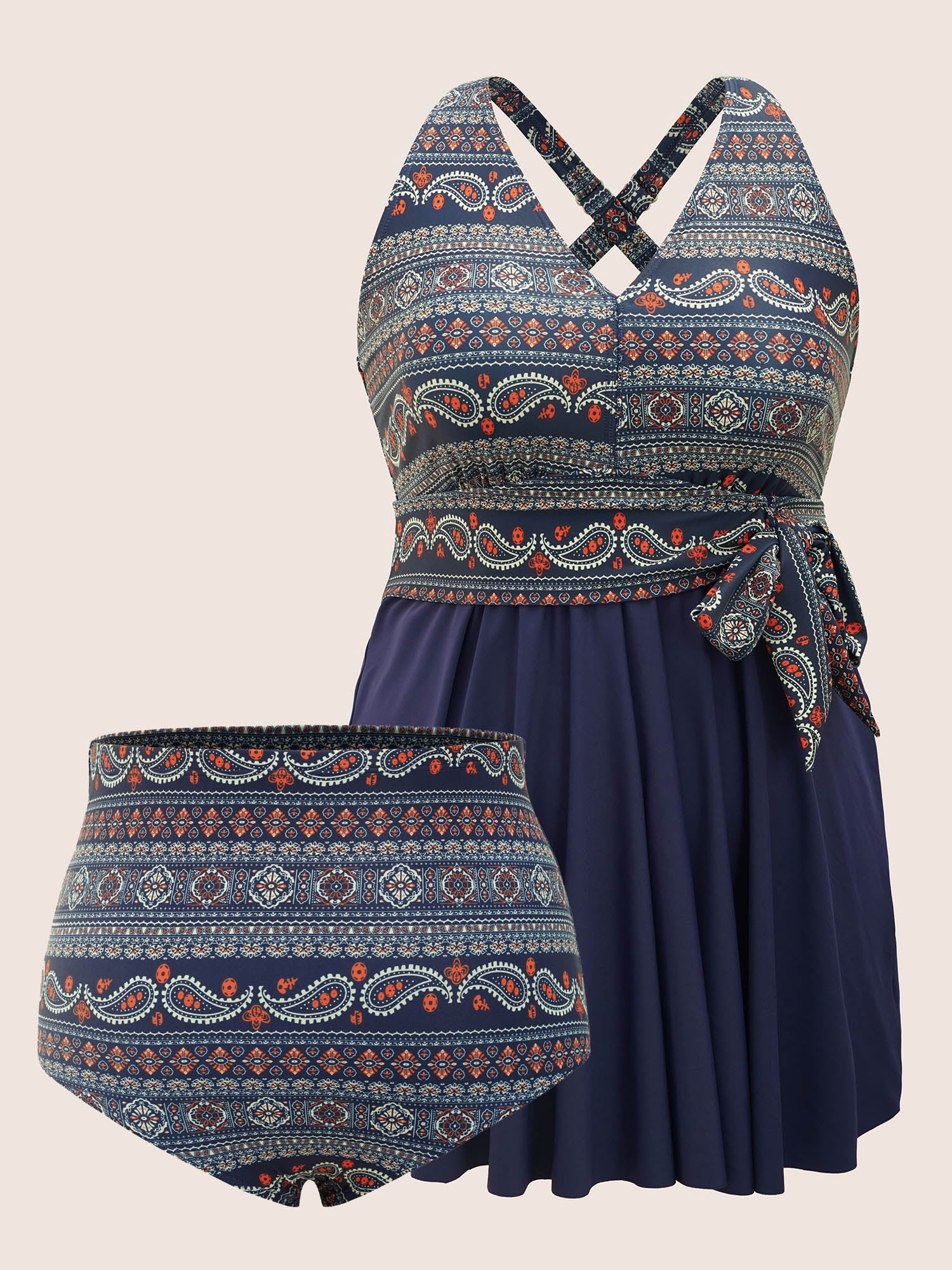 Bandana Print Ties Knotted Patchwork Swim Dress