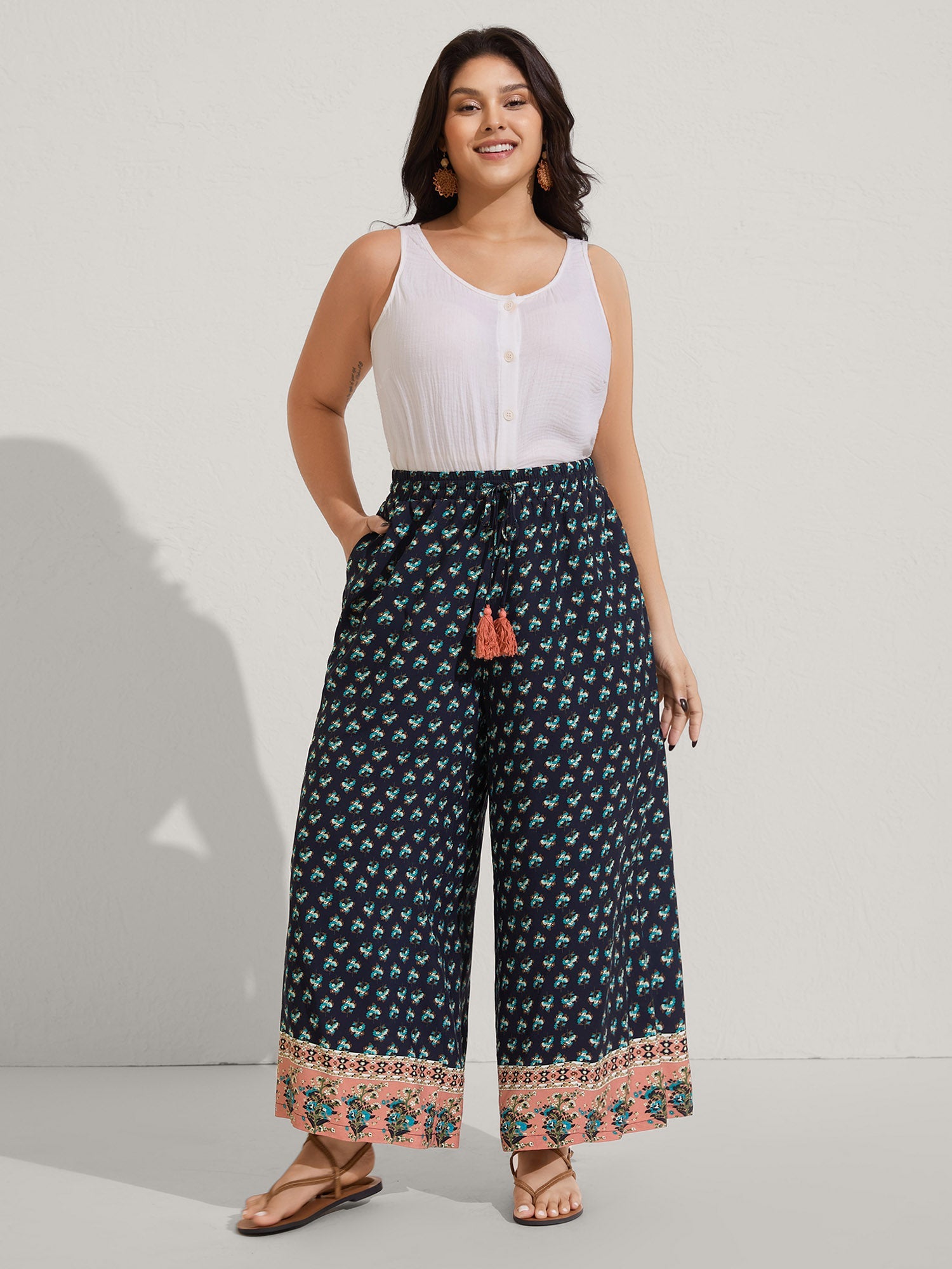 Boho Stretchy Waist Wide-Leg Pants