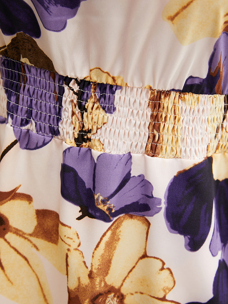 Floral Ruffle Hem Pocket Shirred Cami Dress