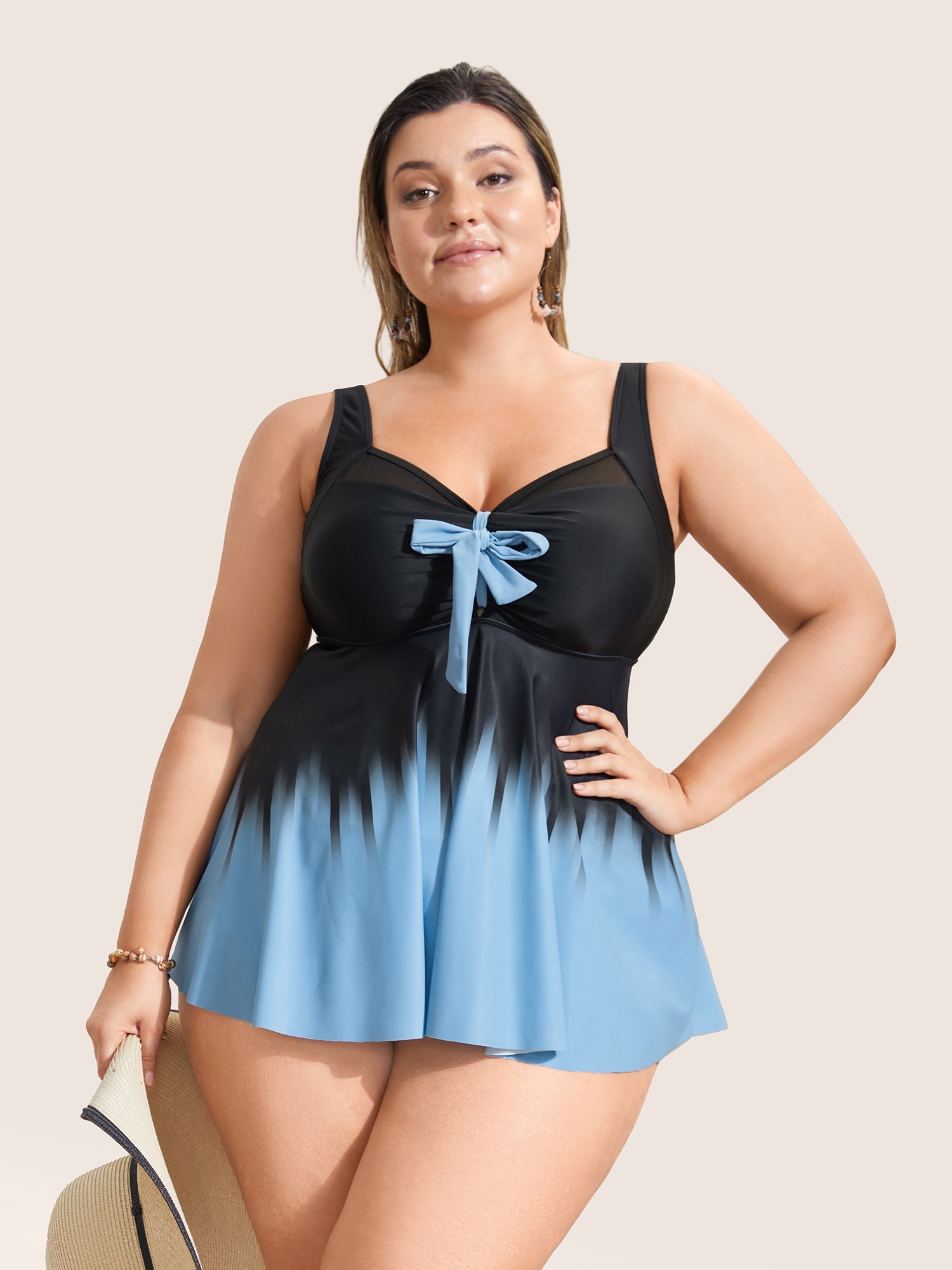 Ombre Bowknot Ruched Mesh Patchwork Swim Top