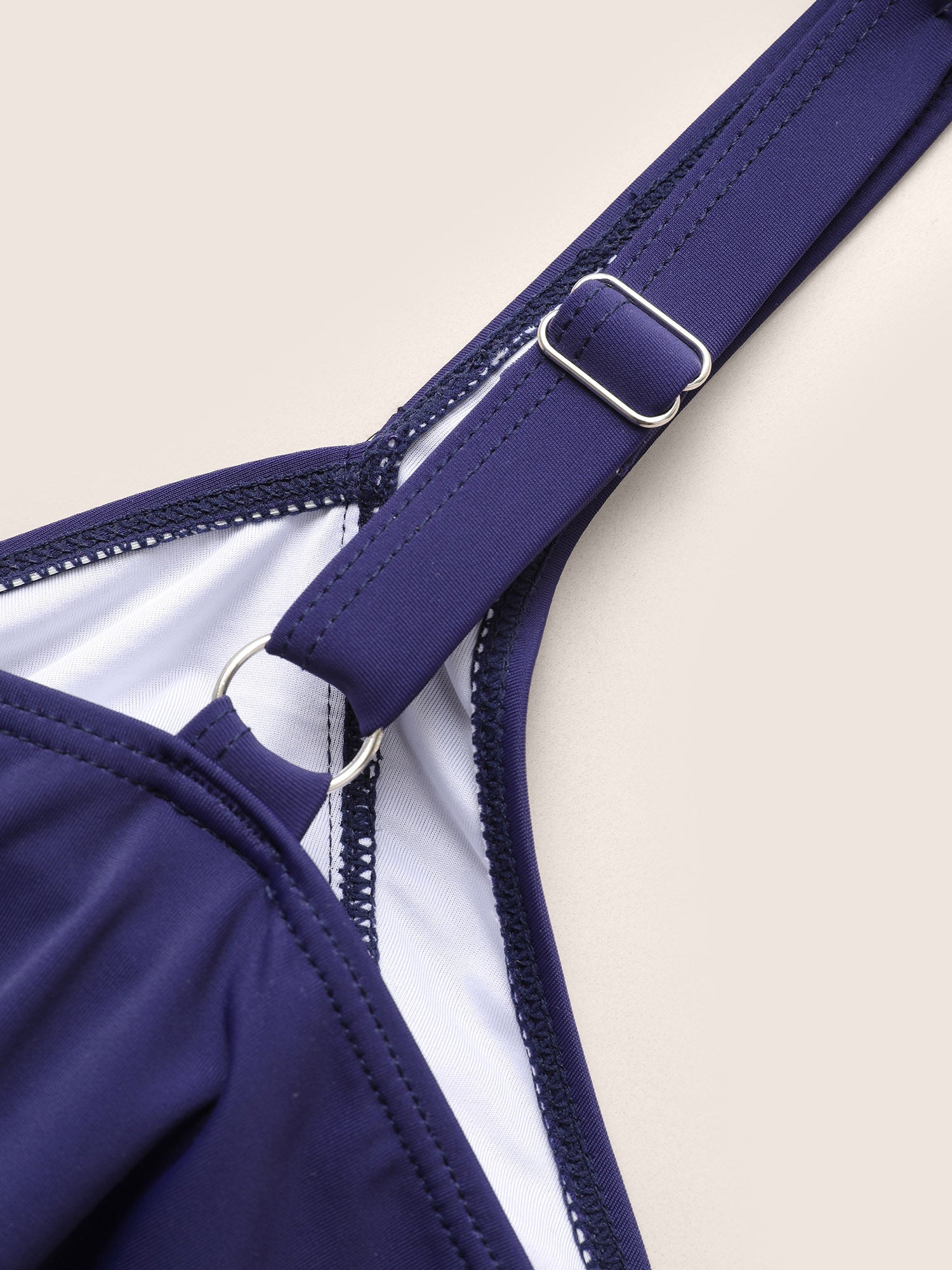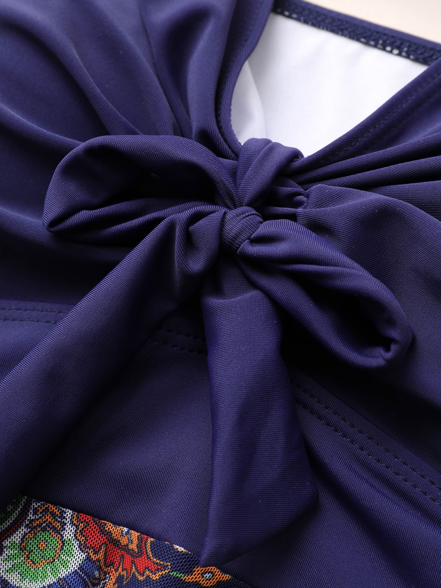Patchwork Ruched Knot Asymmetrical Hem Swim Dress