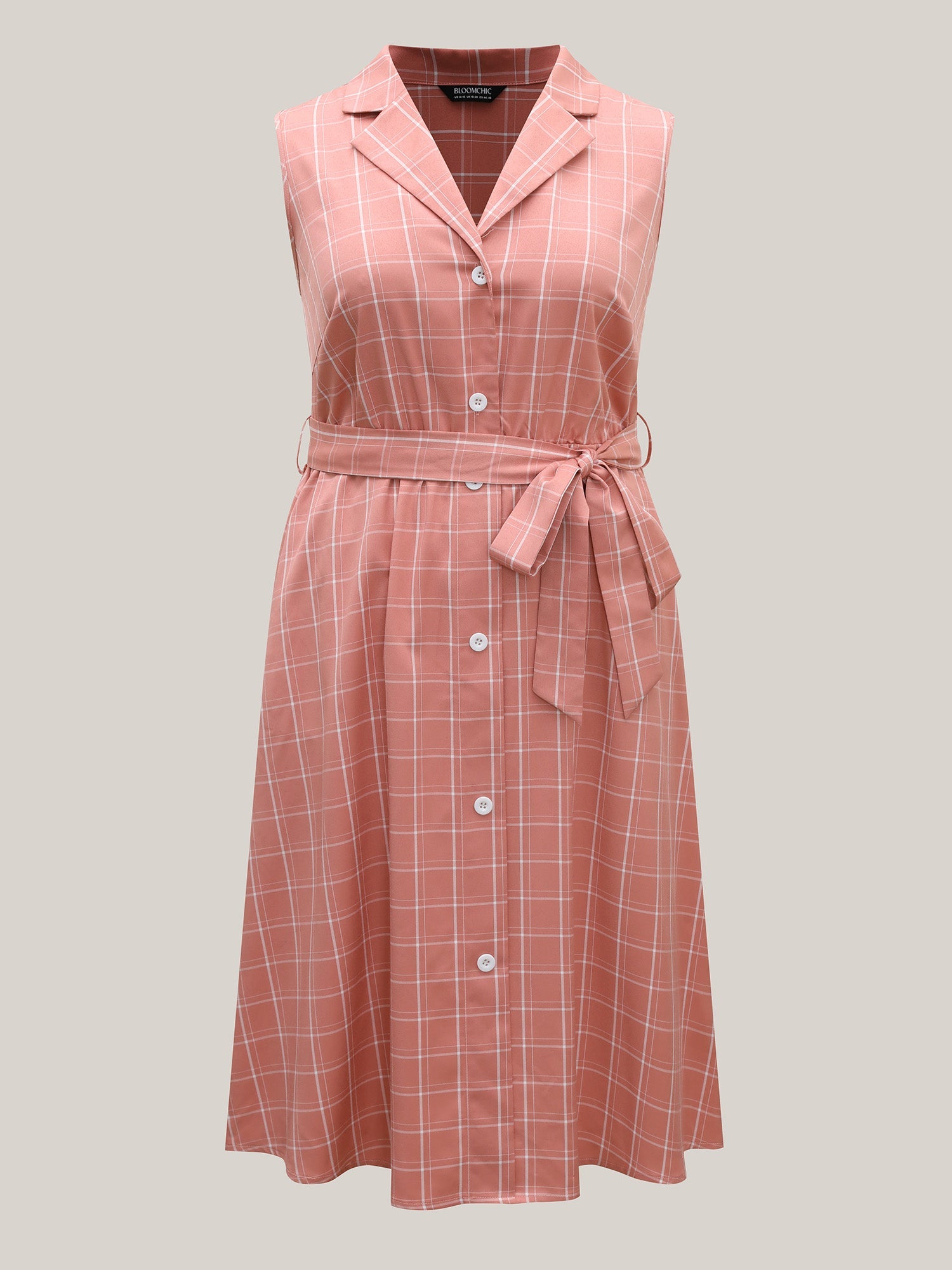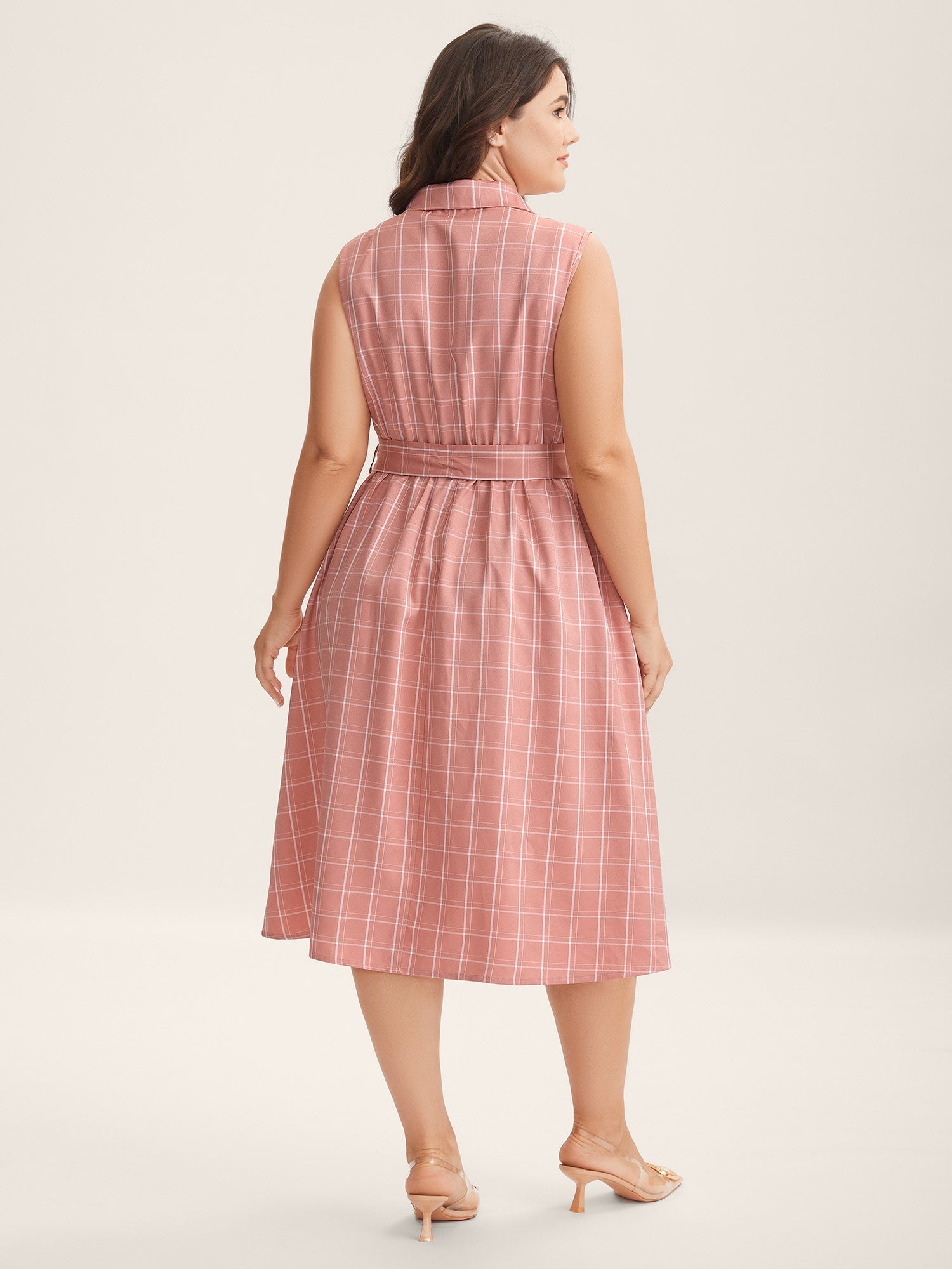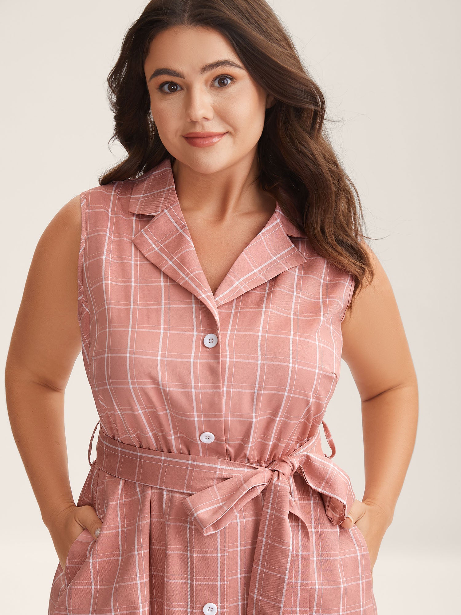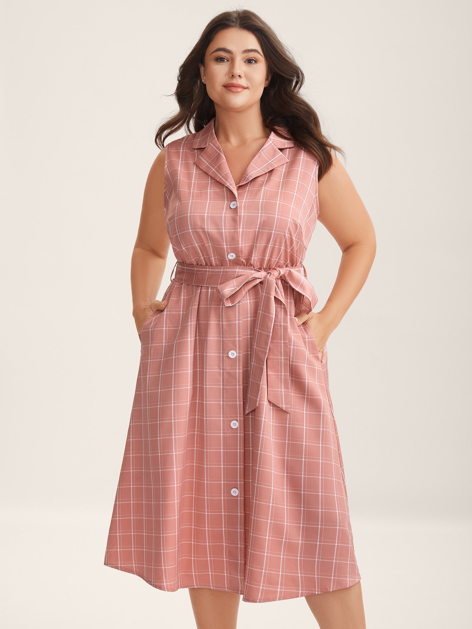 Plaid Belted Pockets Shirt Dress