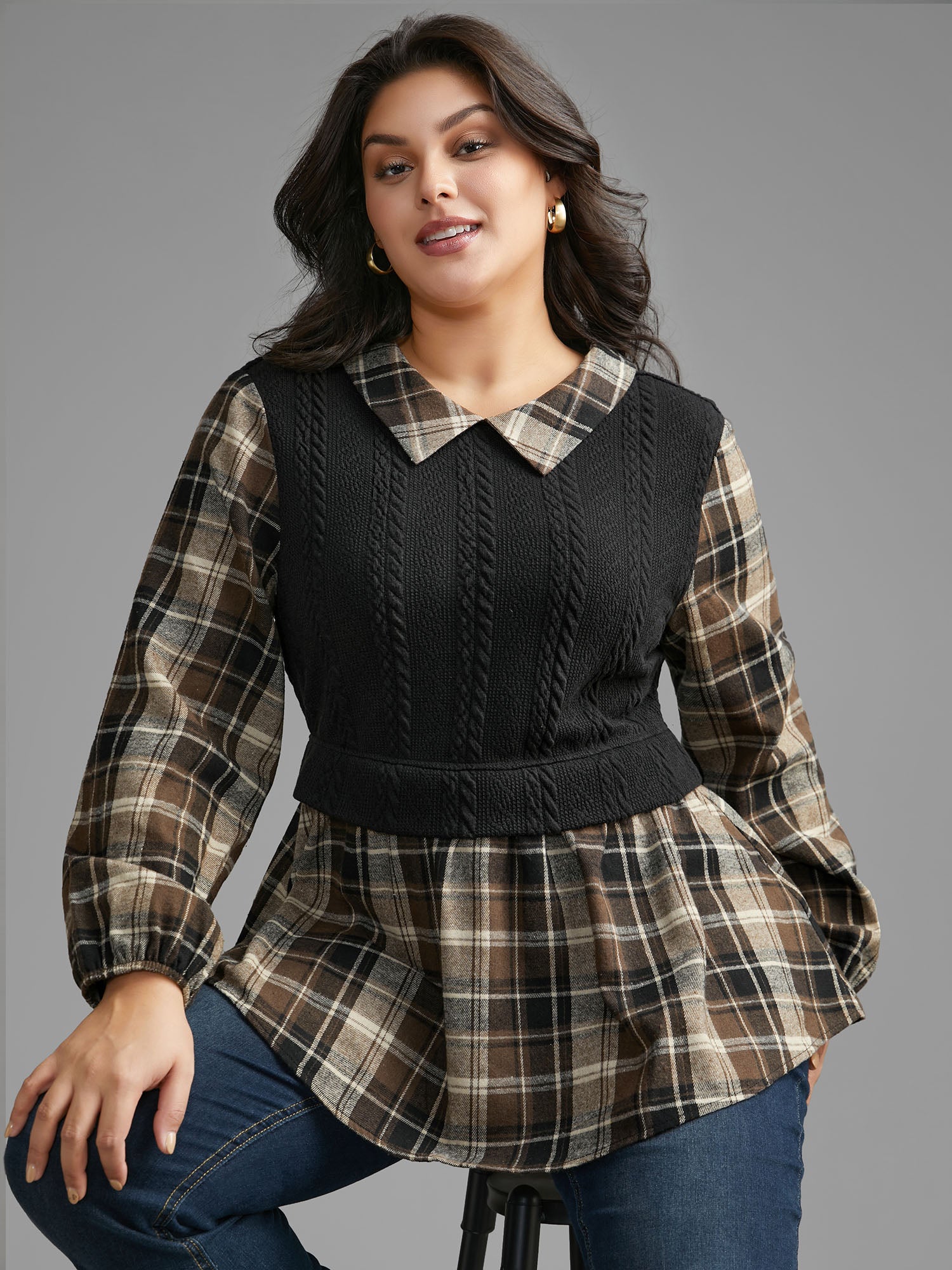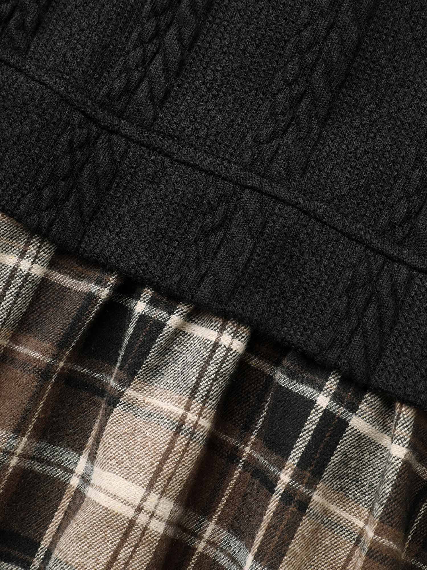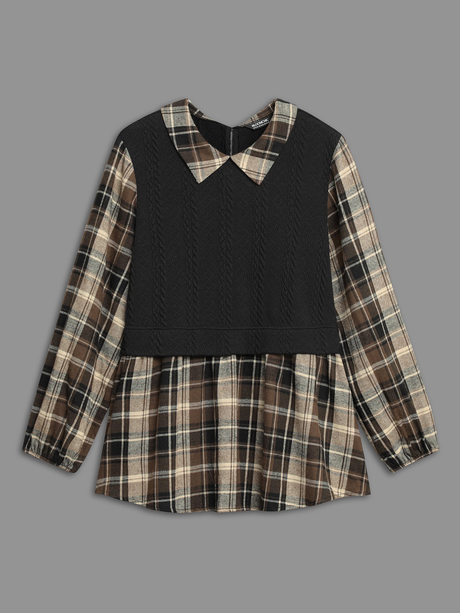 Plaid Patchwork Texture Lantern Sleeve Blouse