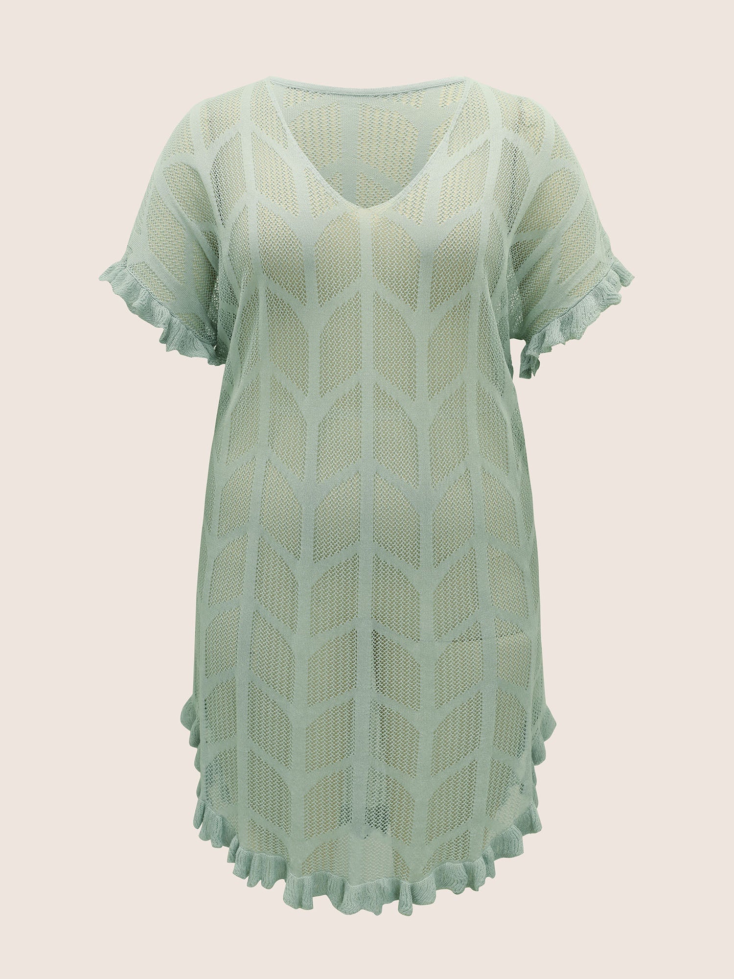 Texture Ruffles Cut Out Dolman Sleeve Swim Cover Up